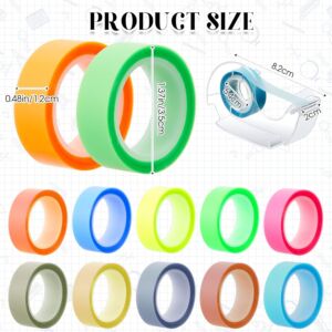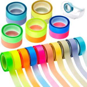 Outus 20 Roll 10 Colours Highlighter Tape Removable 1/2 Inch x 16.4 ft Per Roll Fluorescent Neon Tapes Tape Refills Highlighting Strips with Tape Dispensers for Teacher Student Reading Office Supplies