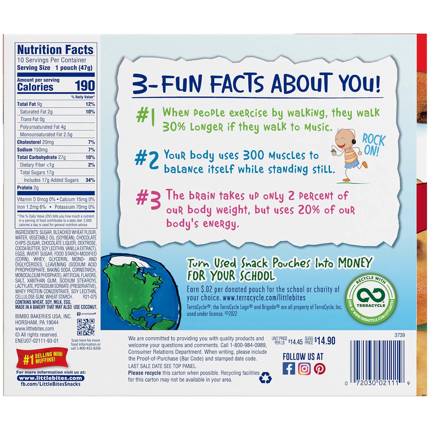 Entenmann’s Little Bites Chocolate Chip Mini Muffins | 2 pack (20 pouches total) In Stock