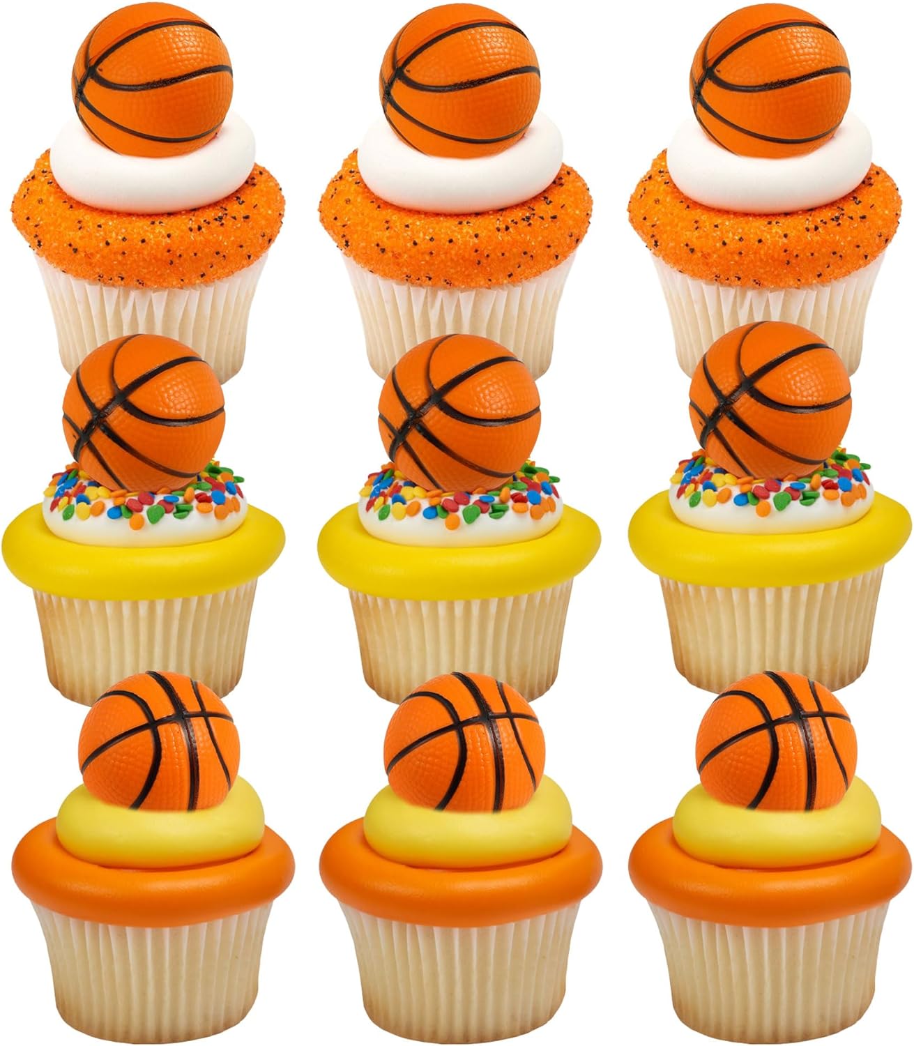 Gyufise 10Pcs Basketball Cake Toppers 3D Basketball Cake Pick Decorations for Sports Theme Babyshower Birthday Event Party Supply Decorations In Stock