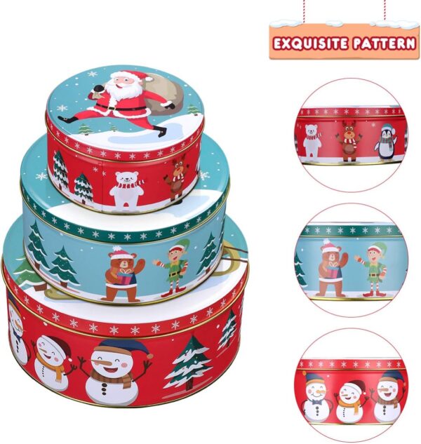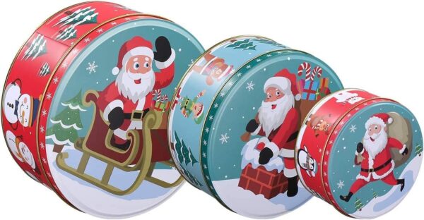 HEMOTON Premium Christmas Tinplate Cookie Tins Set of 3 – Decorative Cookie Gift Tins, Candies Biscuits Treat Boxes Small Gift Case In Stock