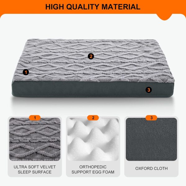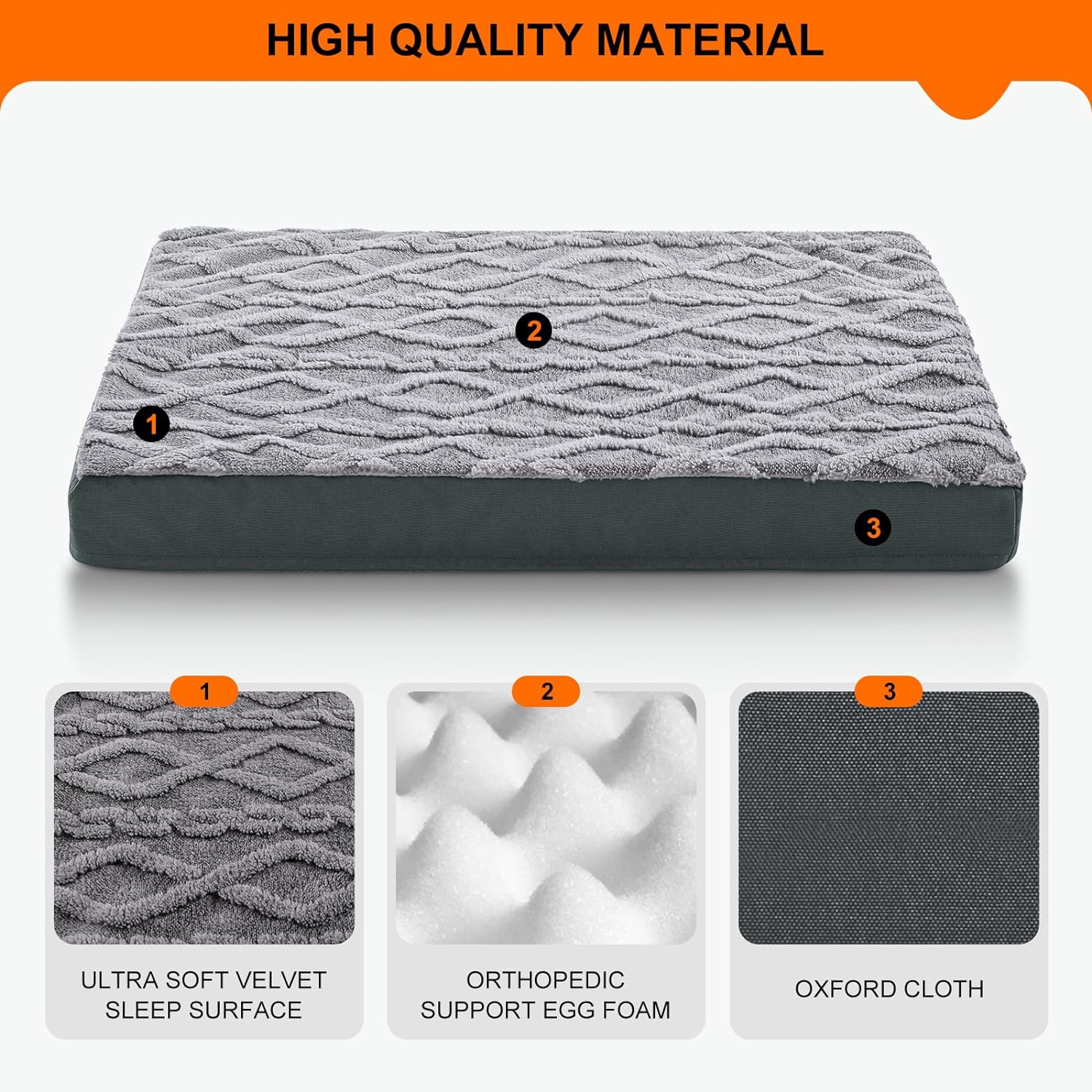 INVENHO Dog Bed for Extra Large Dogs, Soft Plush Orthopedic Dog Bed, Waterproof Dog Crate Bed with Removable Cover and Nonskid Bottom, Egg Crate Foam Pet Bed Mat, Machine Washable (44″x32″x3″) In Stock