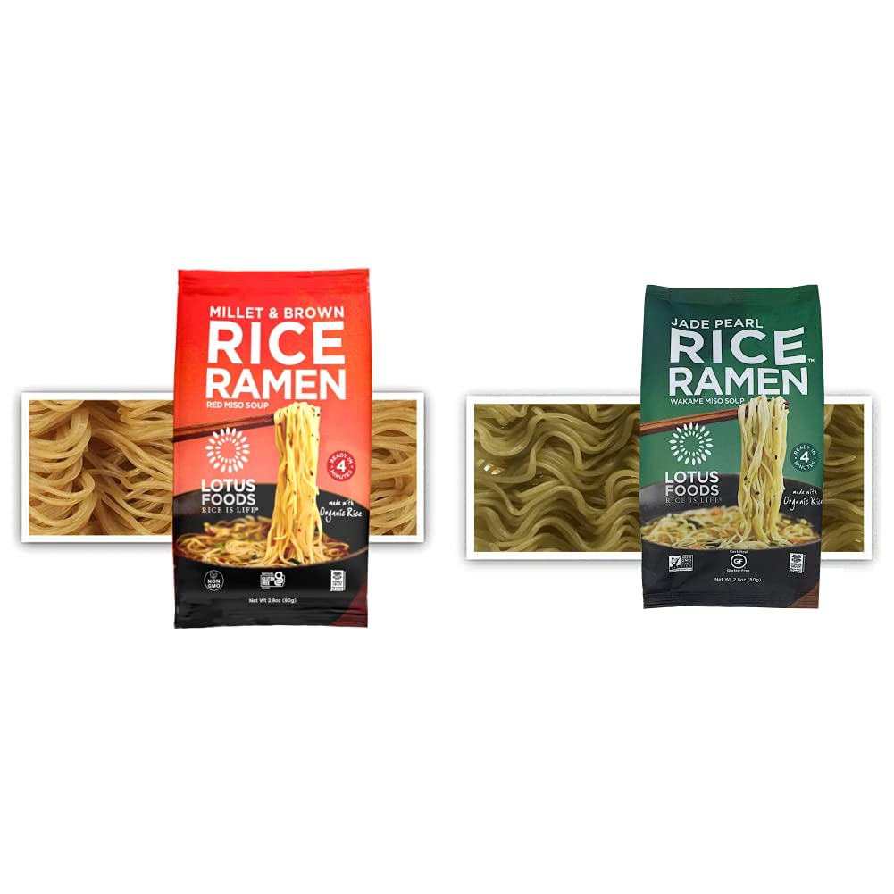 Lotus Foods Variety Pack – Organic Millet & Brown Rice Ramen Noodles with Red Miso Soup + Gourmet Jade Pearl Rice Ramen Noodles with Miso Soup, Japanese Noodles & Broth – 10, 2.8 oz. Packs of Each In Stock