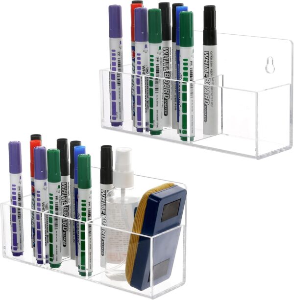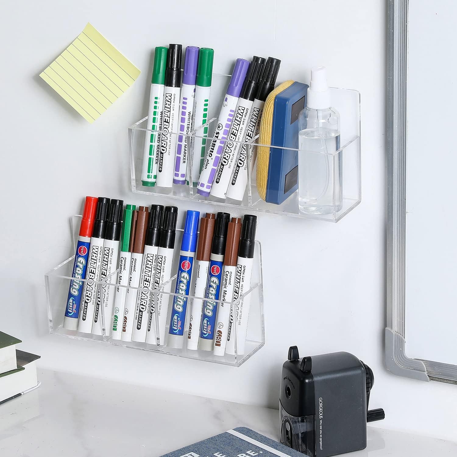 MyGift Premium Clear Acrylic Wall Mounted Dry Erase Marker and Eraser Holder Rack with 3 Compartments, Office Supplies Holder Whiteboard Accessories Storage Rack, Set of 2 In Stock